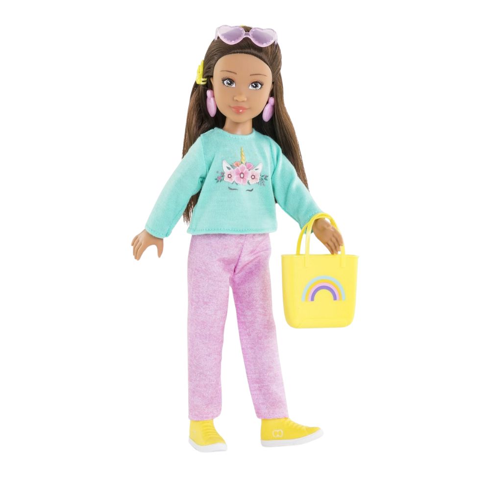 Poupée mannequin de 28 cm. Visage en vinyle qui sent bon la vanille. Yeux peints. Corps réaliste de jeune adolescente, tient assise et debout toute seule. Dès 4 ans.
