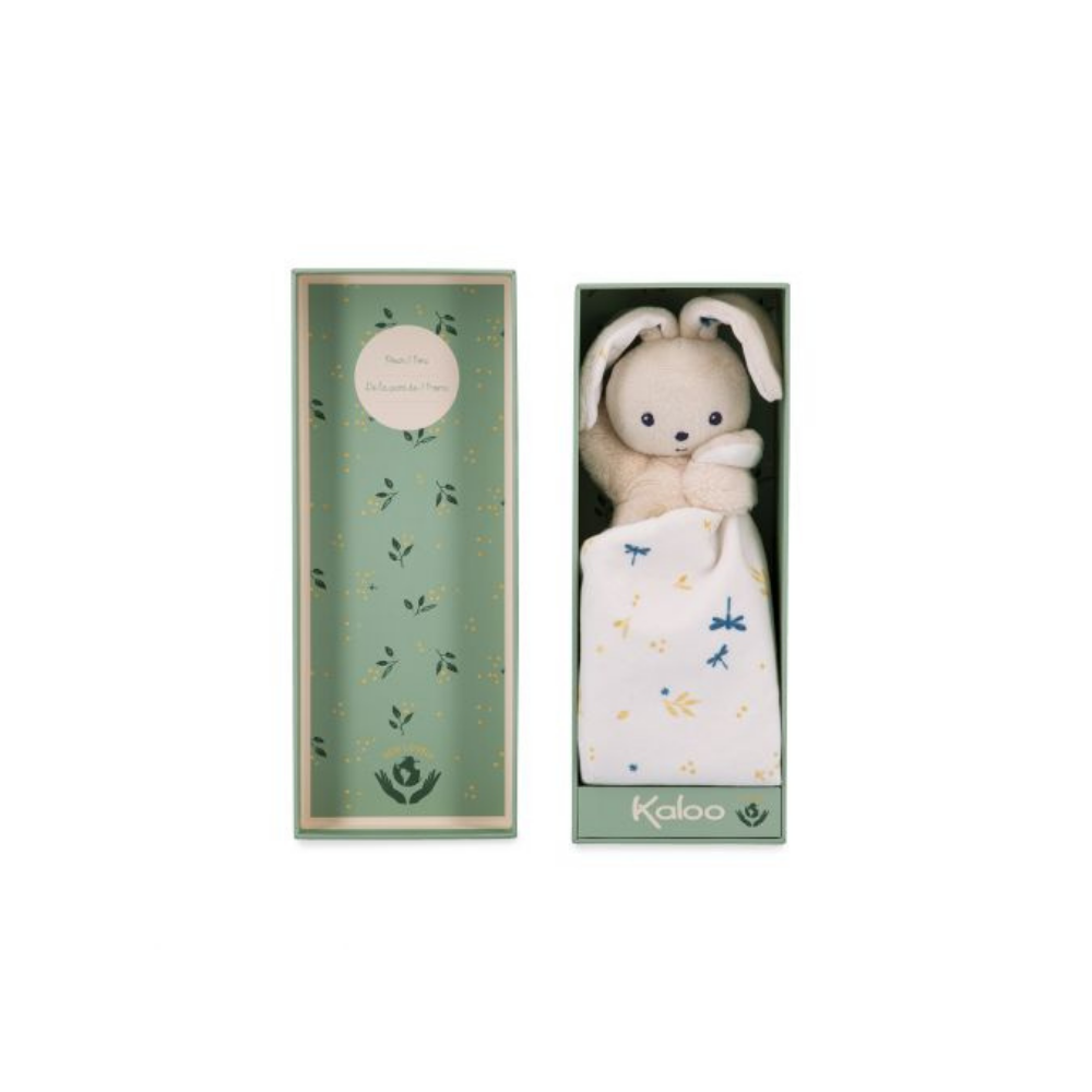 Ce Doudou Lapin conçu par Kaloo, enveloppé dans son carré de douceur sera le compagnon préféré de bébé.