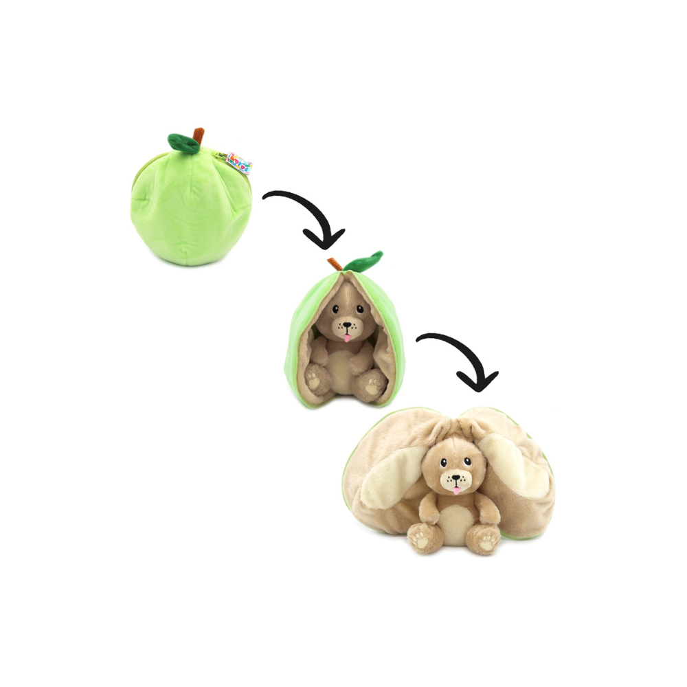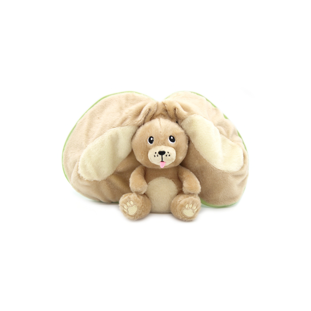 Le doudou chien se distingue par ses oreilles en forme de pommes, qui se ferment grâce à une astucieuse fermeture éclair. Cette fonctionnalité ludique stimule l’imagination de votre enfant en lui permettant de jouer à cache-cache avec son petit chien.