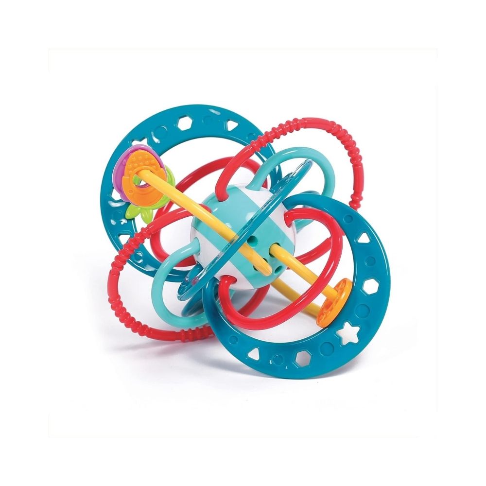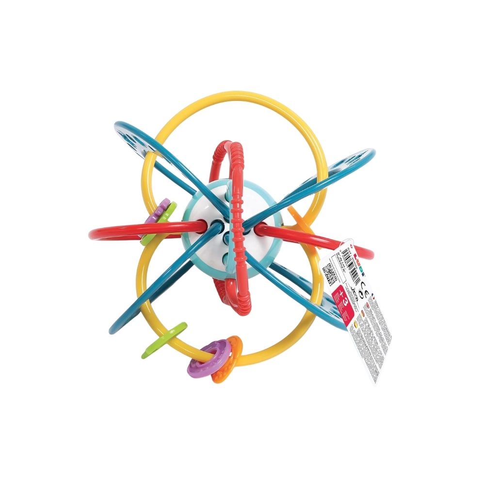 Le hochet planète est un jouet d’éveil coloré conçu pour stimuler la curiosité et les sens des tout-petits. Grâce à ses tuyaux souples de différentes tailles et à ses perles texturées, il est facile à attraper et à manipuler par les petites mains de bébé.