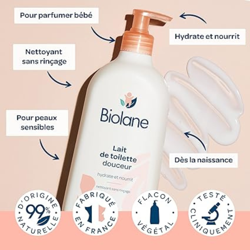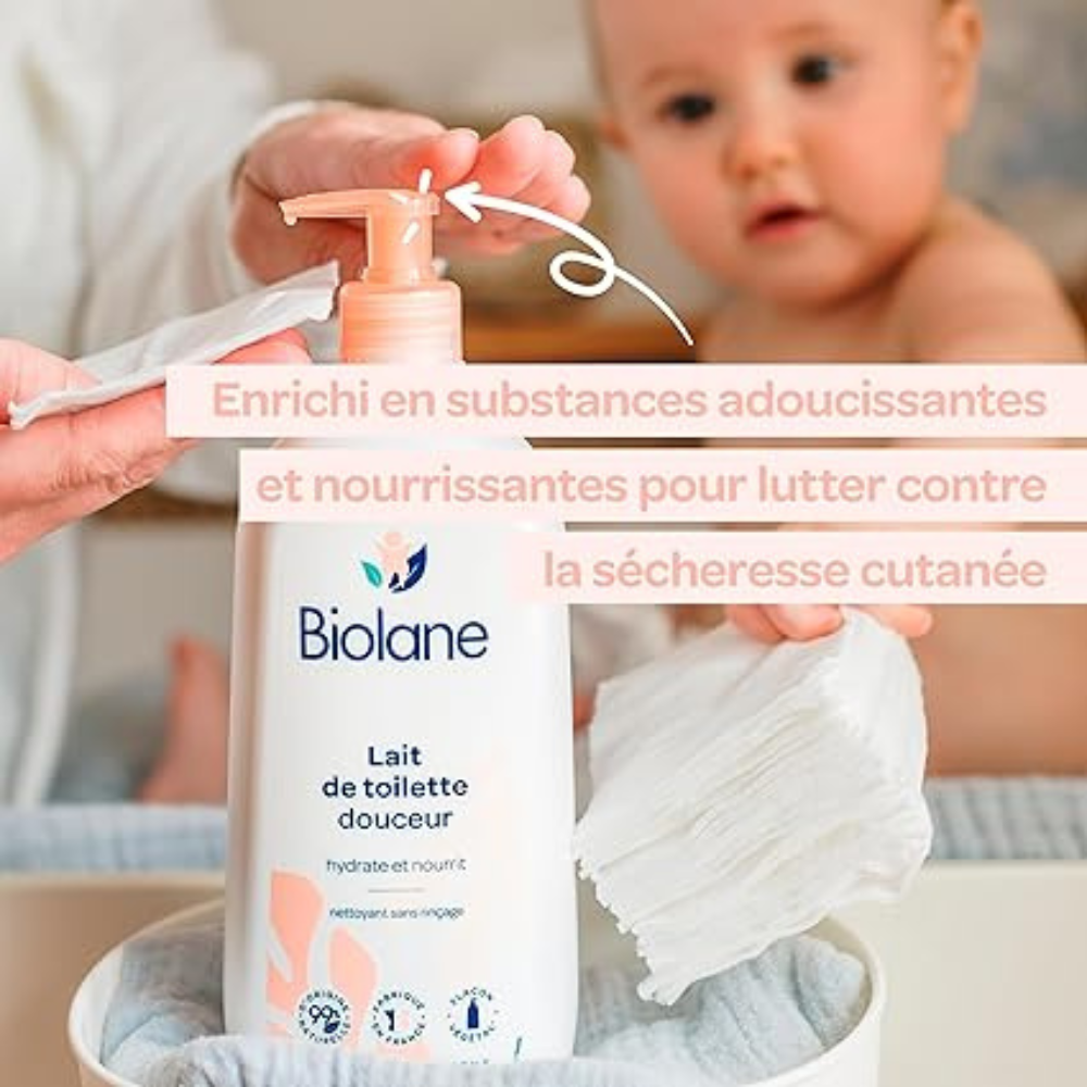La vocation de Biolane est de protéger la peau sensible de votre bébé grâce à une composition à 99% d'ingrédients d'origine naturelle, enrichie en substances adoucissantes, qui nettoie en douceur tout en hydratant intensément et ainsi lutte contre la sécheresse cutanée.