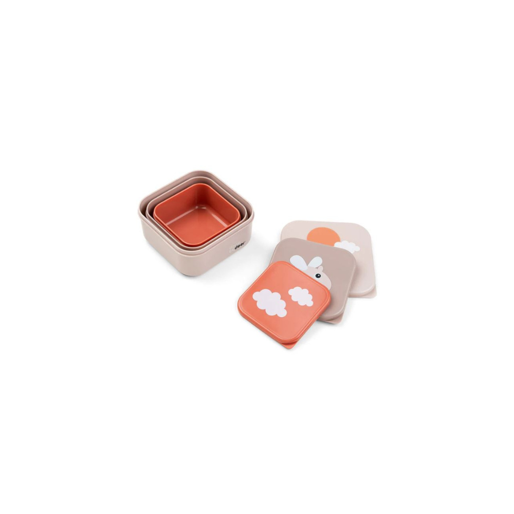 Avec le lot de 3 boîtes à goûter gigognes conçu par Done by Deer, vous pourrez emporter partout le goûter de votre enfant. Grâce à leurs différentes tailles, ces boîtes vous permettront de stocker ensemble ou séparément les éléments du goûter de bébé.