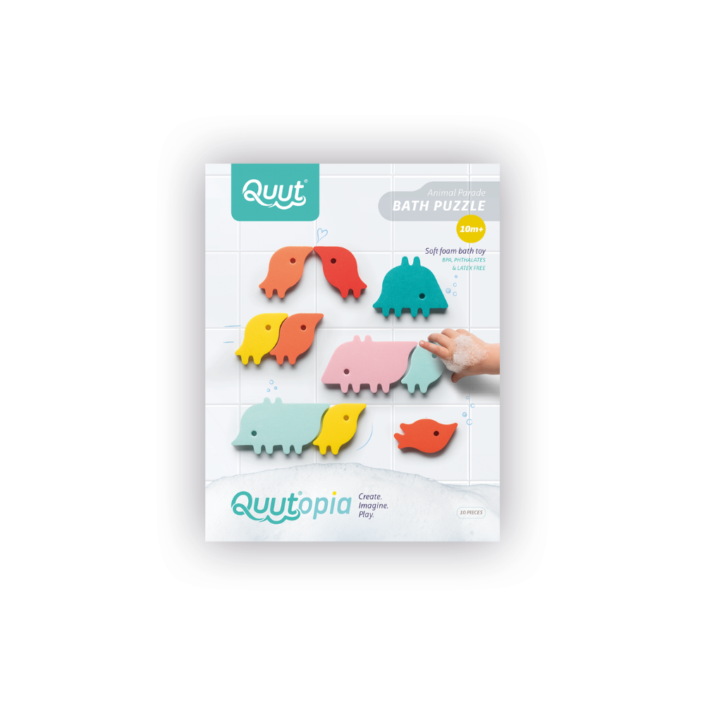 Est-ce un oiseau ou un poisson ? Un cochon ou un tapir ? Un hérisson ou un renardeau ? Les petites créatures de la Parade des animaux de Quut vous jouent des tours : en fonction de la façon dont vous les tenez ou les positionnez sur la baignoire ou la paroi de la douche, vous verrez des formes différentes !