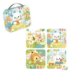 Chaque puzzle, composé de 6, 9, 12 et 16 pièces, accompagne l’enfant dans sa progression, et stimule ainsi sa motricité fine et sa concentration. Un défi adapté à chaque étape de son apprentissage ! Chaque puzzle possède une couleur différente au dos, ce qui aide l’enfant à identifier facilement les 4 puzzles. De plus, les grosses pièces sont parfaitement adaptées aux petites mains, et rendent l’expérience de jeu à la fois amusante et agréable. C'est un voyage ludique à travers les puzzles : les bambins débutent leur découverte de ces jeux reconnus pour favoriser la logique et la dextérité, accompagnés d’adorables illustrations ! C’est une excellente façon de combiner jeu et apprentissage. Pratique, ces puzzles animaux sont rangés dans une valisette avec une poignée, ce qui permet à votre enfant de les emporter partout. Que ce soit en voyage ou lors d’une visite chez ses grands-parents, votre petit pourra emmener avec lui cette activité calme et stimulante.