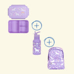 Sac à dos vendu seul ou en pack avec la boîte à bento et gourde assorties.