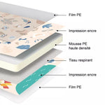 Ce tapis de jeu est conçu avec une surface imperméable. Essuyez le simplement avec un chiffon humide pour nettoyer les tâches et résidus.